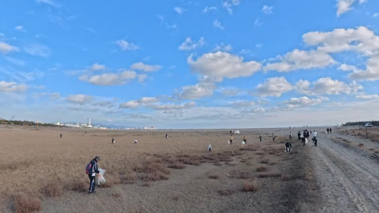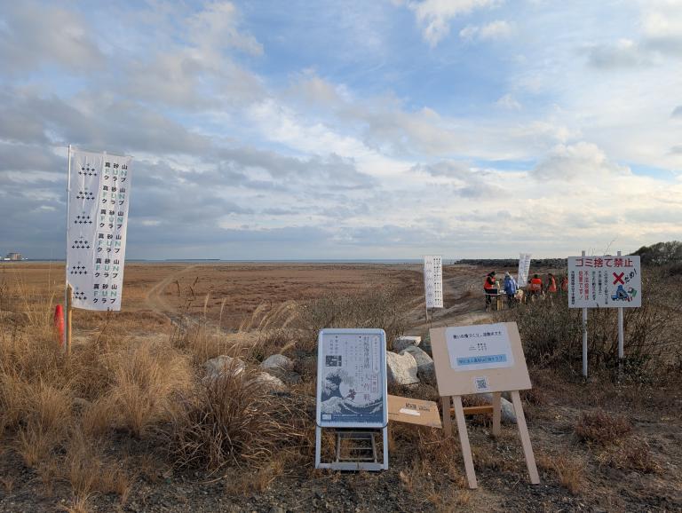 役員他、ご協力頂いている方々は早朝6:30より前から準備を始めて村松海岸に7:00前には到着して作業の準備を行いました。当初、今日は何人くらいご参加頂けるかな?寒いし少ないかもね~?なんて話をしている中、作業開始時間8:30に近づくにつれ、当初の心配は杞憂に終わり、大変沢山の方にご参加頂きました!!有難いことにこれまで同様に常連さんと東海村役場の方にご参加頂いており、こうして開催している上で毎回ご参加頂ける方がいるということに感謝しなくてはいけないなと改めて感じました。他にも東海村の外からもご参加頂いており、先達て開催したティラノサウルスレース他のイベントも含めて楽しく参加しているよとのお話も頂き、大変嬉しく思っております。
